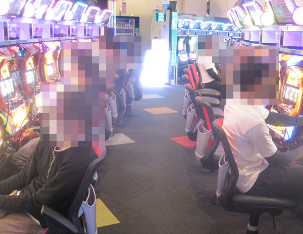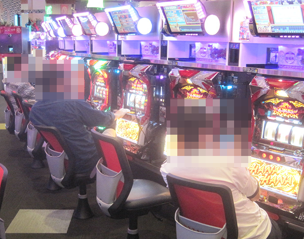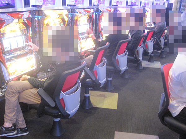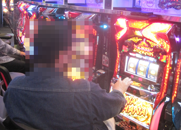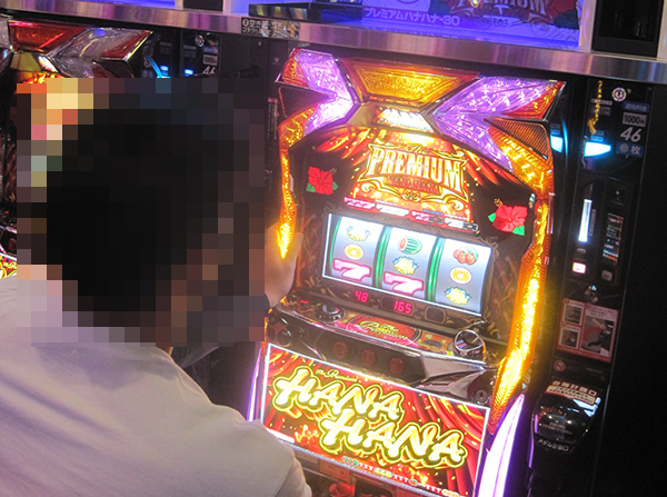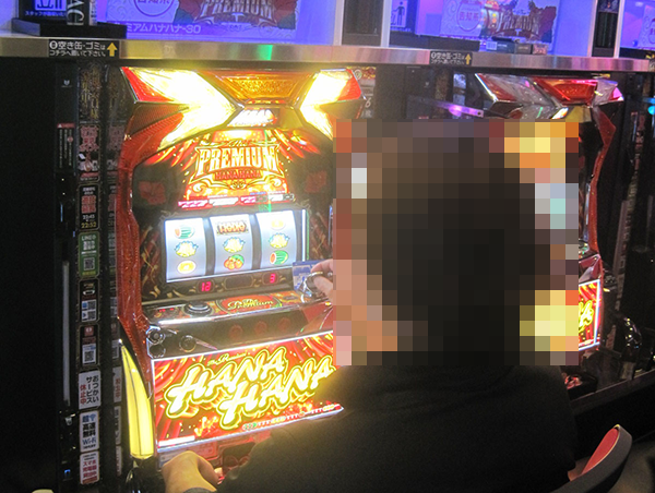 38台設置されている「プレミアムハナハナ‐30」で、笑みを浮かべて遊技をおこなっている姿を発見。機種が持つ魅力を堪能している様子であったことも覚えている。