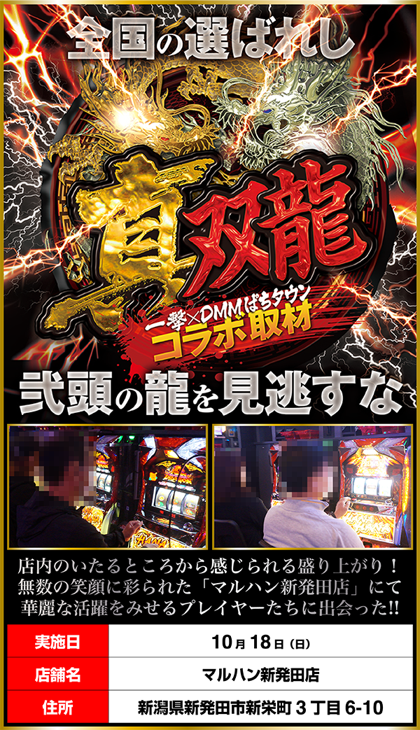 「真双龍」の舞台となったのは、700台の遊技台が設置されている「マルハン新発田店」。