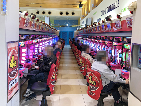 14時過ぎの4円パチンコをチェックすると「CRスーパー海物語IN沖縄4」や「ぱちんこCR真・北斗無双」が高稼働。プレイヤーの嬉しそうな表情を多数確認している。
