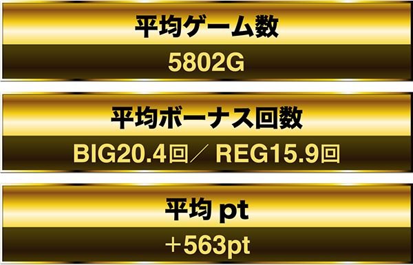 最終的な平均ゲーム数は5802Gで、平均ptはプラス563ptを記録。そのほかのジャグラーシリーズにも平均ptをプラスで終える台がいくつもあった。