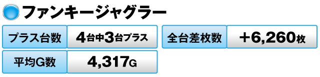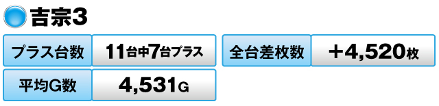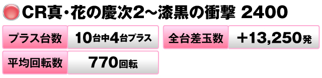 10台中4台がプラスで全台差玉数が+13,250発を記録した。