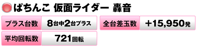 8台中2台がプラスで全台差玉数は+15,950発だった。