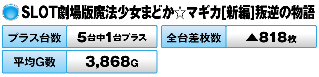 また、『SLOT劇場版魔法少女まどか☆マギカ[新編]叛逆の物語』も悪くない感じだったが、残念ながらマイナス差枚に終わってしまった。