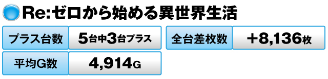 5台中3台がプラスで全台差枚数は+8,136枚を記録した。