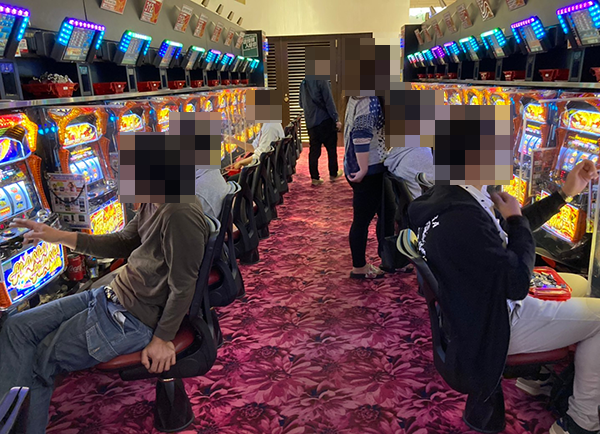 入店して目にはいってきたのは、楽しそうに遊技をおこなっているプレイヤーの姿。各シマが笑顔に彩られ、ホール全体がにぎやかな状況となっていた。