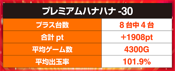 プレミアムハナハナ‐30はプラス台数割合50%!!