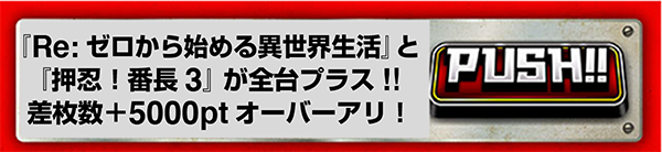 『Re:ゼロから始める異世界生活』や『バーサス』をはじめ、7機種以上が全台プラス。