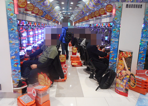 朝イチに多くのプレイヤーたちが注目していたのは、地下1階にあるパチスロコーナーだ。