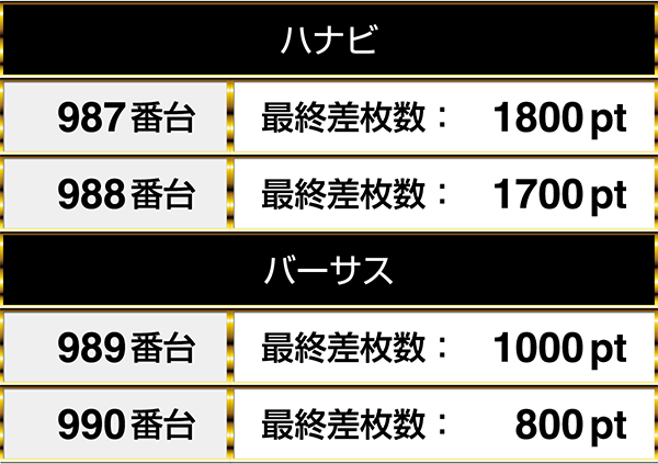 となりにある『バーサス』の2台をあわせると、987番台から990番台までが並んでプラスptを記録!!