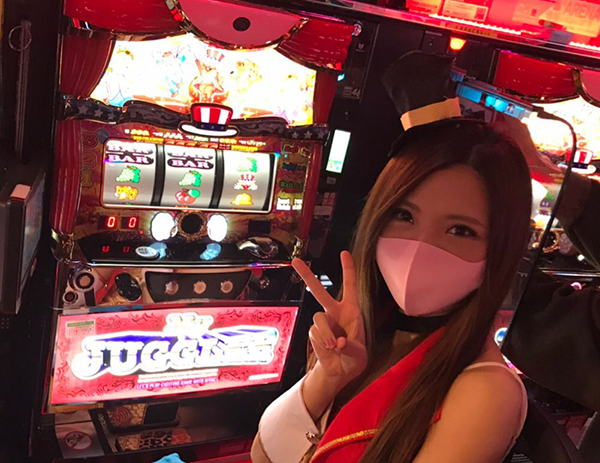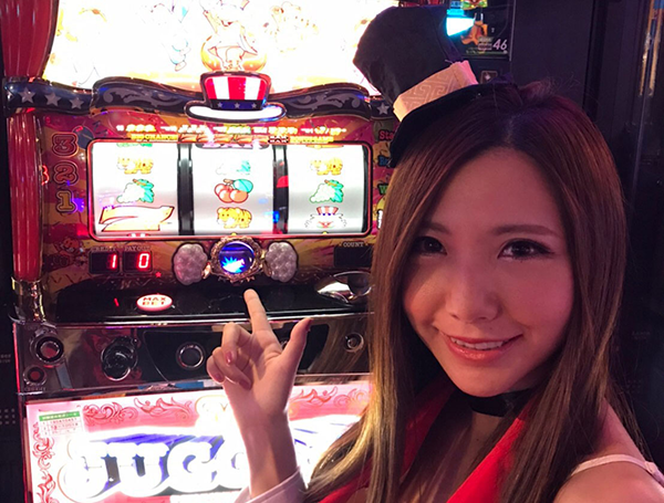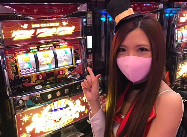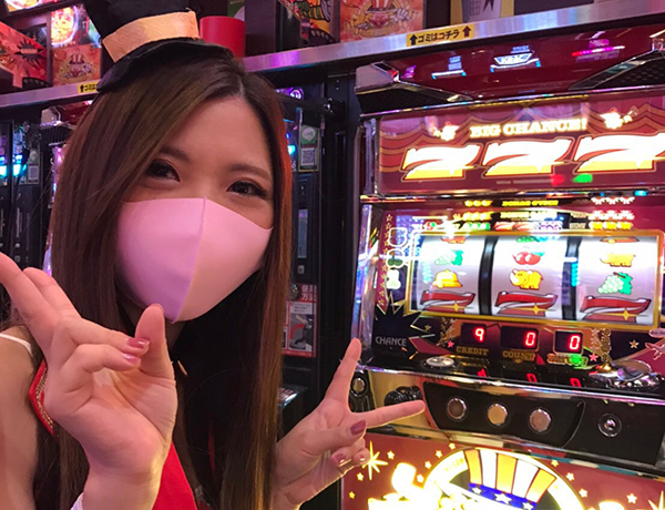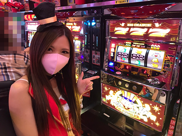 さまざまな機種が並んでいるなかから、ひかるちゃんは「アイムジャグラーEX-AE」に着席♪