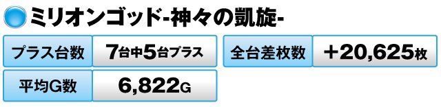 パチスロでは、『ミリオンゴッド-神々の凱旋-』が抜群のパフォーマンスを見せた。