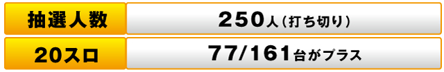 パチスロ全体では、161台中77台がプラスで、トータルの差枚数は+72,439枚という結果だった。