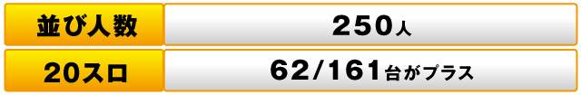 ただし、パチスロ全体では161台中62台がプラスだったものの、トータルの差枚数は-11,800枚と惜しくもマイナスに終わってしまった。