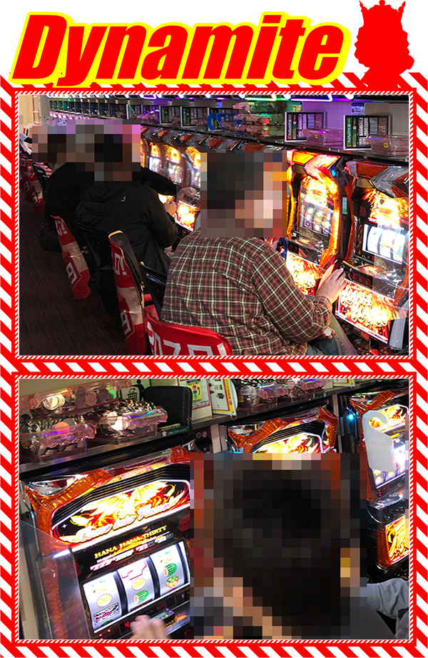 ・出玉…「ハナハナ鳳凰-30」に2箱以上が2台と1箱1台、「プレミアムハナハナ‐30」に5箱1台と2箱1台など、他多数