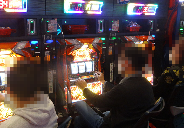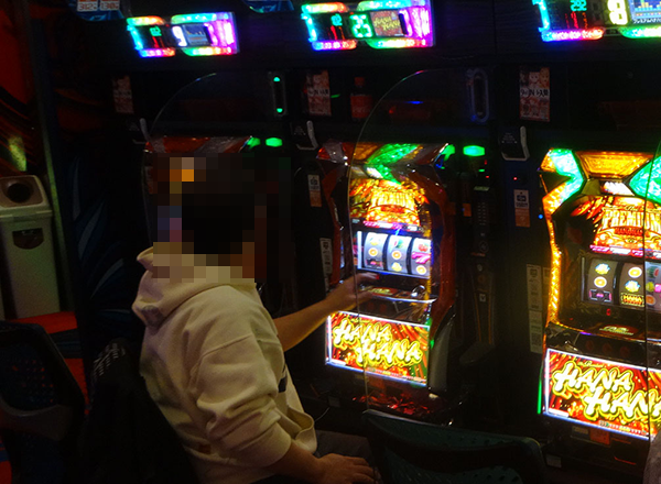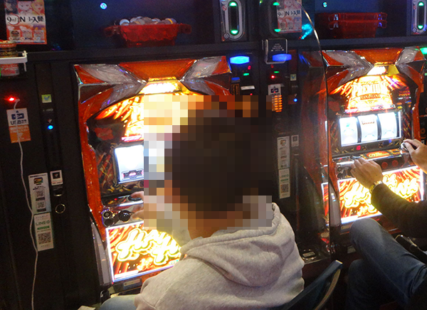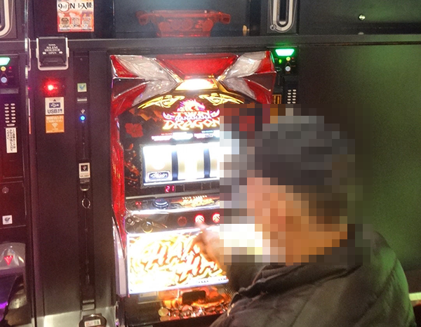 楽しそうに遊技をおこなっている姿は「ツインドラゴンハナハナ-30」にもあった。