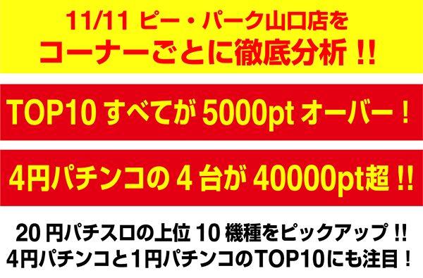 11月11日の日刊ぱちタウンは、「ピー・パーク山口店」をピックアップ。