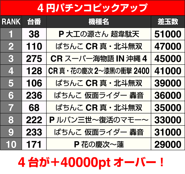 20円パチスロ、4円パチンコ、1円パチンコと、すべてのコーナーのTOP10を一挙に公開!