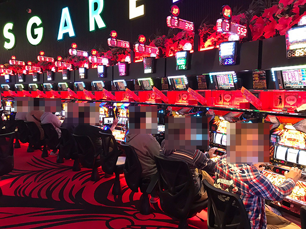 さまざまな機種が支持されている店内で、とくに目立っていたのがパチスロのハナハナシリーズとジャグラーシリーズ!