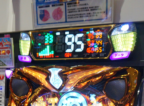 16時頃にデータカウンターを確認すると、7台が大当り回数50回オーバー。なかには、90回を上回る台もあった。