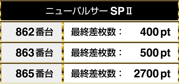 『ニューパルサーSPⅡ』は2700ptを含めて、3台が連なってプラスpt!!