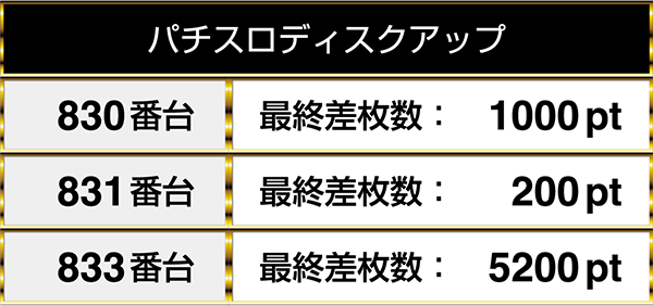 4台設置の『パチスロディスクアップ』は3台がプラスptとなり、そのうちの1台が5200pt!!