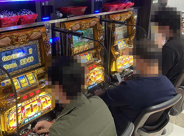 入店時から退店するときまで、つねに活気づいていた「フジ相模原店」。2柱が降臨したホールを舞台に、鮮やかな光景を目にした。