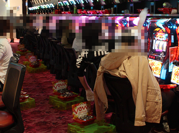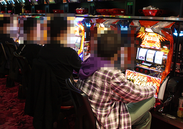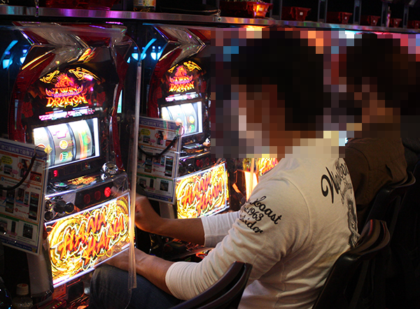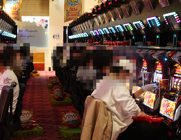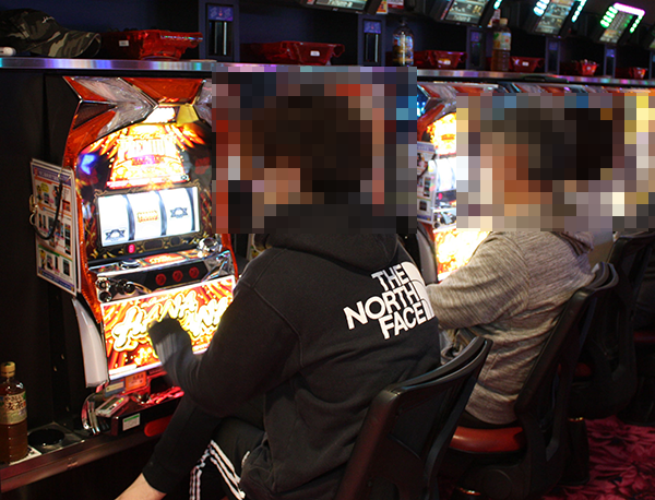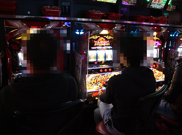 14時をまわった頃の「ツインドラゴンハナハナ-30」をみると、楽しそうに遊技をおこなっている姿が並んでいた。