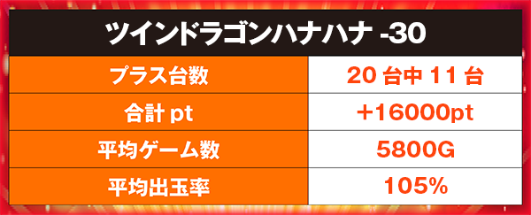 ツインドラゴンハナハナ-30はトータル+16000pt!