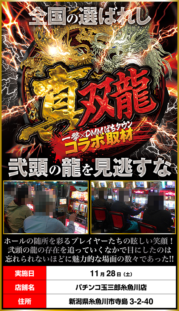 「パチンコ玉三郎糸魚川店」にて、龍の存在を探る「真双龍」を実施。