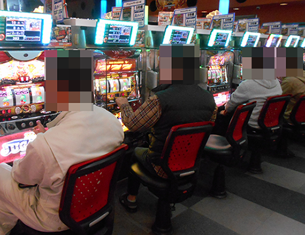 にぎわうパチスロコーナーでは、さまざまな機種が支持を集めていた。