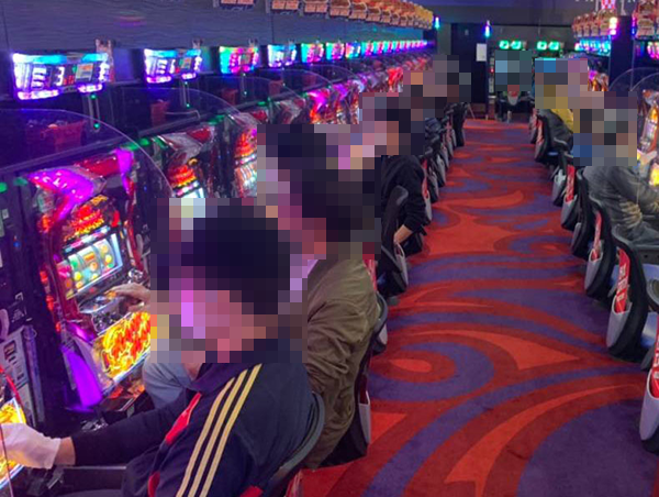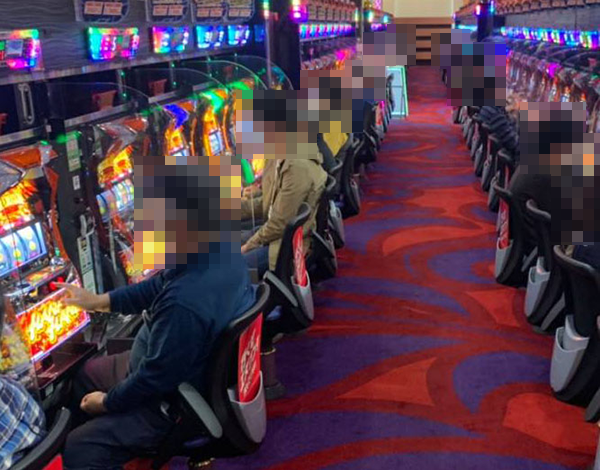 5円パチスロにもハナハナシリーズが設置されているホールであり、確認時には楽しそうな光景が広がっていた。