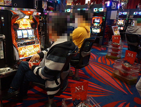 また、「ハナハナ鳳凰-30」にもイキイキと遊技をおこなっている姿があり、楽しげなムードが感じられた。