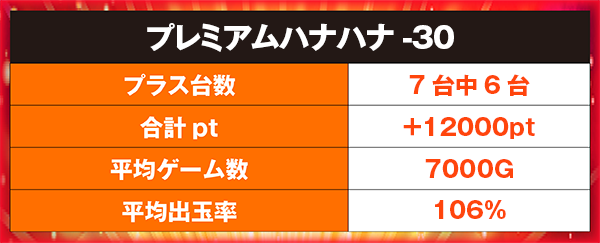 閉店時の平均ゲーム数は7000Gで、合計ptは+12000ptを記録。6台がプラスでこの日を終えた。