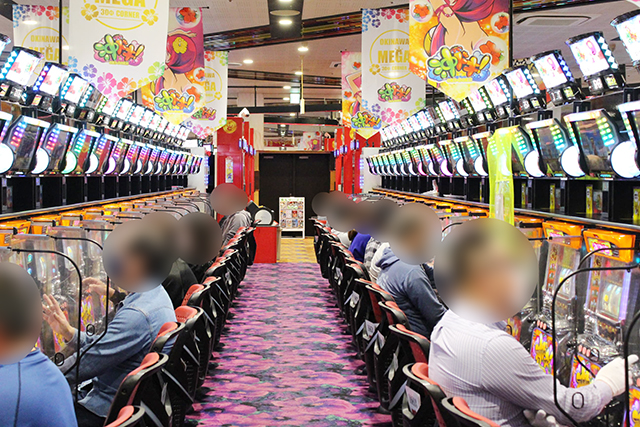 3連休および全国パチンコ・パチスロファン感謝デーの前日にリアルモンスタークロスを実施した「メガコンコルド1220名古屋みなと23号通り店」。多数の景品が展示され、カウンター前に並ぶ『Pとある』が満台の人気を集める中、パチスロにもいつものように好調台を発見。その結果をお届けする。