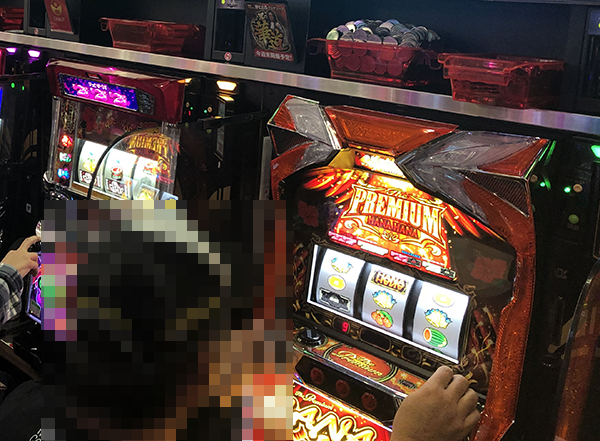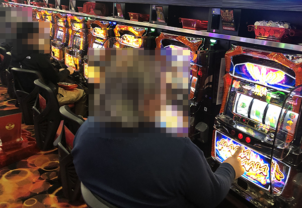 「プレミアムハナハナ-30」をみてみると、うれしそうにストップボタンを押している姿があり、機種が持つ魅力を堪能していることがうかがえた。