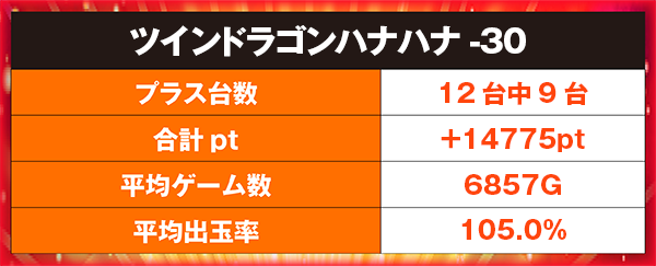 ツインドラゴンハナハナ-30は12台中9台がプラス!!