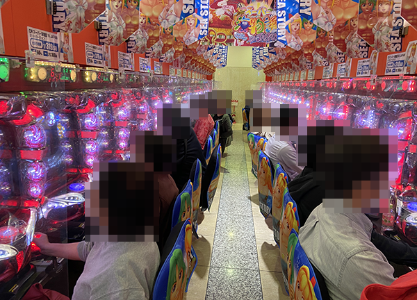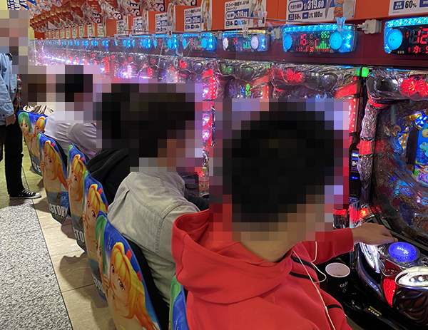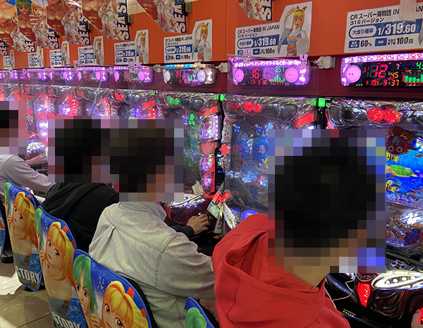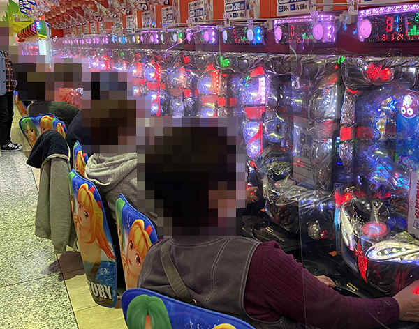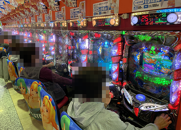 活気づいているパチンコでは、「CRスーパー海物語IN JAPAN」で遊技をおこなっているプレイヤーの笑顔がもっとも輝いてみえた。
