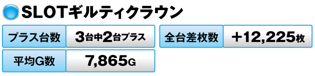 3台中2台がプラスで全台差枚数は+12,225枚を記録。