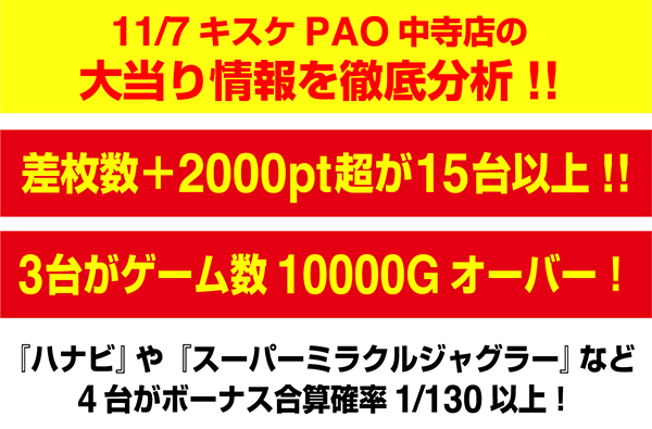 11月7日の日刊ぱちタウンは、キスケグループイメージキャラクターのキスケンが特徴的な「キスケPAO中寺店」をピックアップ。