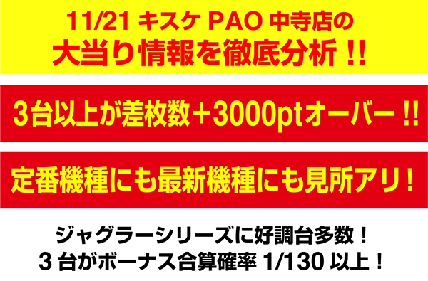 11月21日の日刊ぱちタウンは、キスケグループイメージキャラクターのキスケンが特徴的な「キスケPAO中寺店」をピックアップ。