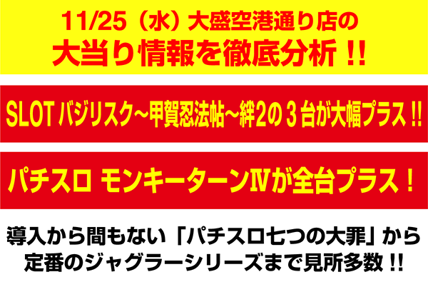 11月25日、大盛グループイメージキャラクターの大盛マンが特徴的な「大盛空港通り店」を日刊ぱちタウンでピックアップ。