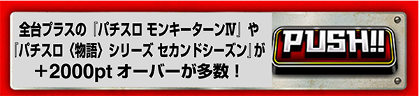 『パチスロ モンキーターンⅣ』と『パチスロ〈物語〉シリーズ セカンドシーズン』は全台プラス。