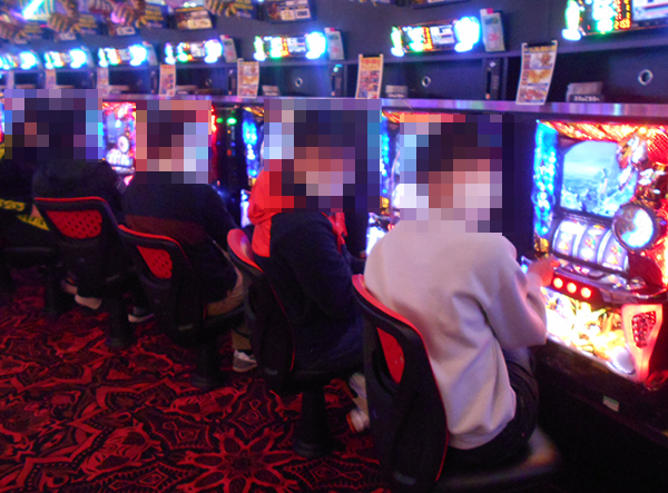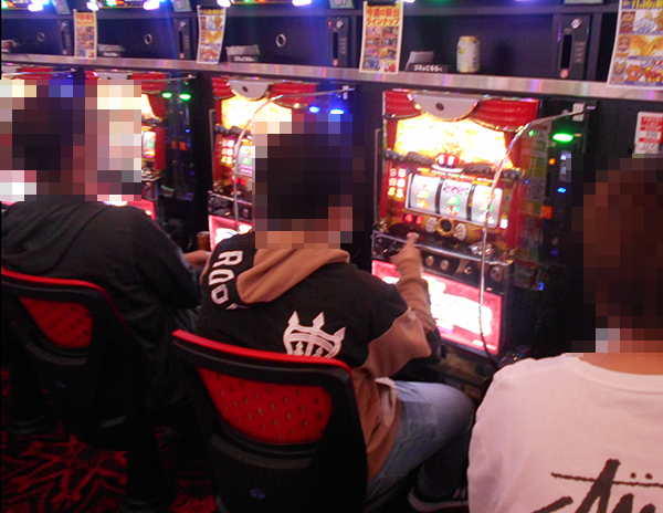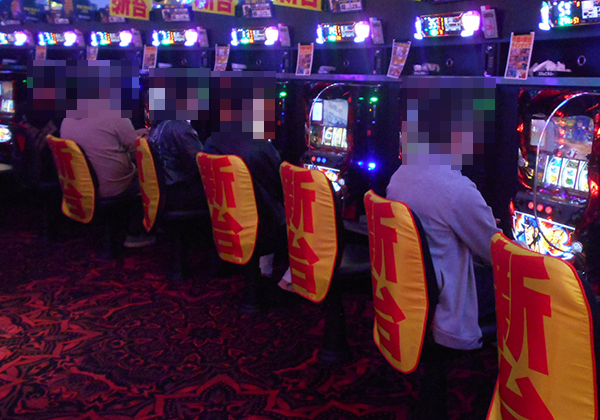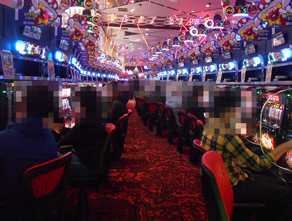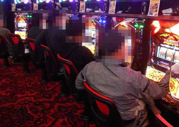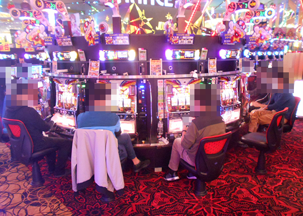 600台以上の遊技台が並ぶパチスロでは、ジャグラーシリーズが人気を集めていた。