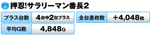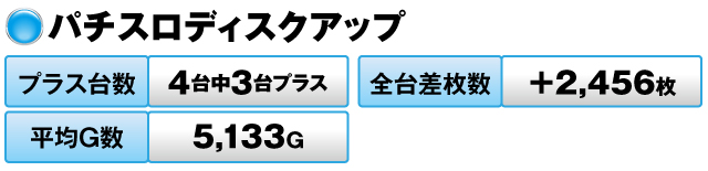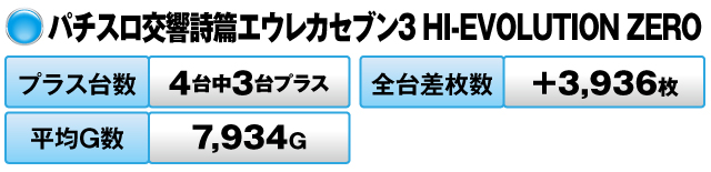 4台中3台がプラスで全台差枚数は+13,188枚、平均G数は7,652Gだった。