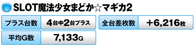 4台中2台がプラスで全台差枚数は+6,216枚を記録。