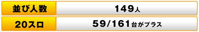 しかしながら、パチスロ全体では、161台中59台がプラスだったものの、トータルの差枚数では、-20,570枚と残念ながらマイナスに甘んじた。