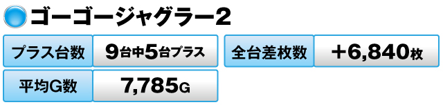 4台すべてがプラスで全台差枚数は+15,548枚、平均G数が8,987Gだった。