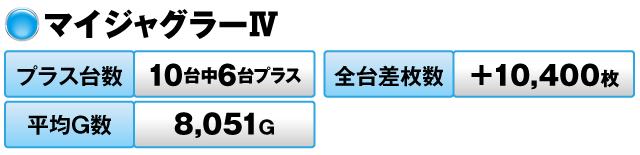 10台中6台がプラスで全台差枚数は+10,400枚を記録した。