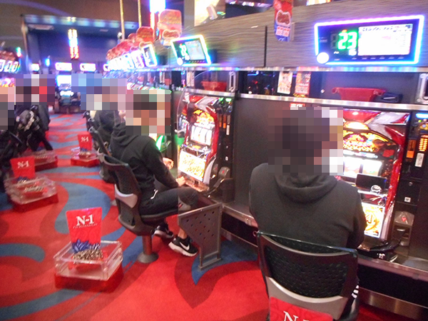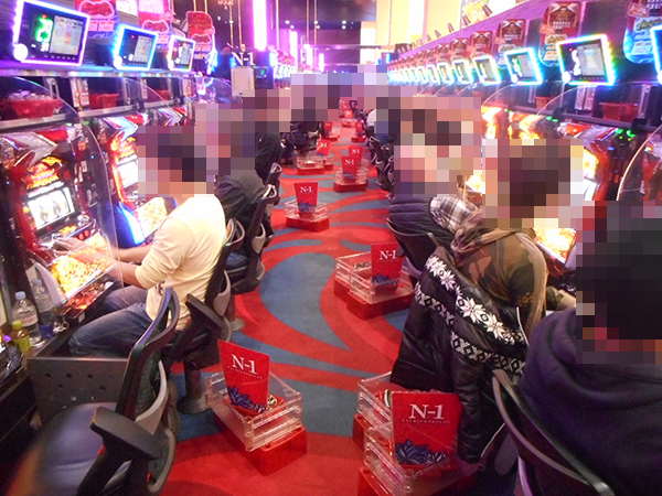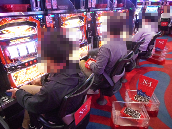 確認時の「ツインドラゴンハナハナ-30」は約7割が稼働しており、多くの台で笑みを浮かべて遊技をおこなっている姿を目にした。