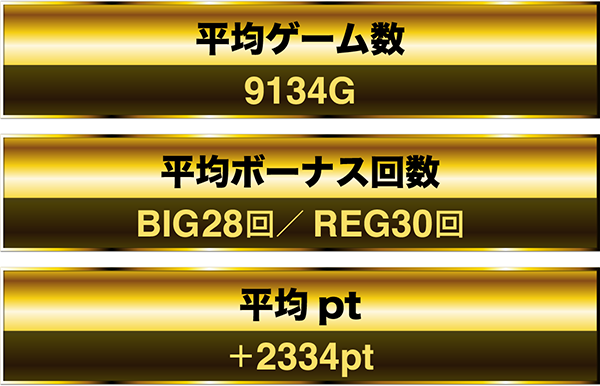 1日を通した平均ゲーム数は9134Gであり、平均ptはプラス2000ptを上回った。